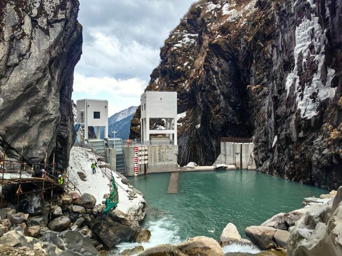 这是2025年3月17日在尼泊尔中北部拉苏瓦县拍摄的三金考拉水电站大坝。新华社发(中国港湾工程有限责任公司供图)